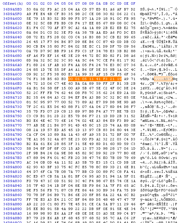 Ich habe also einen kleinen Parser geschrieben, der das moov-Atom einliest, alle relevanten Sample-Daten rauszieht und mit deren Hilfe die jeweils ersten 16 Bytes von jedem Sample ausliest und in eine Log-Datei schreibt. Klingt easy, hat auch nur einen ganzen Abend gedauert bis ich das Ganze soweit am Laufen hatte... ;) Der MP4-Parser war dabei übrigens überaus hilfreich.