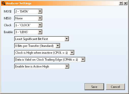 SPI Protocol Analyzer Settings