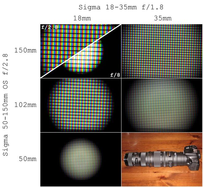 Wie man sieht, ist die Kombination bei 150mm noch gut brauchbar. Die Ecken sind zwar schon schwarz, aber man muss nicht allzuviel wegcroppen. Bei 100mm haben wir den ''Sweet Spot'' des 50-150, die Abbildungsqualität ist besser als bei 150mm, aber man kann nicht mal mehr ein quadrat mit voller Bildhöhe rauscroppen. Die 50mm sind unbrauchbar, da ist man mit dem 18-35 alleine + Retroring besser bedient. Ebenfalls sollte man das Objektiv an der Kamera nicht abblenden, weil das ebenfalls zu extremen Vignettierungen führt (siehe oben 150/18 @ f/8). Das 18-35 war bei allen Bildern offen, also nicht abgeblendet.
